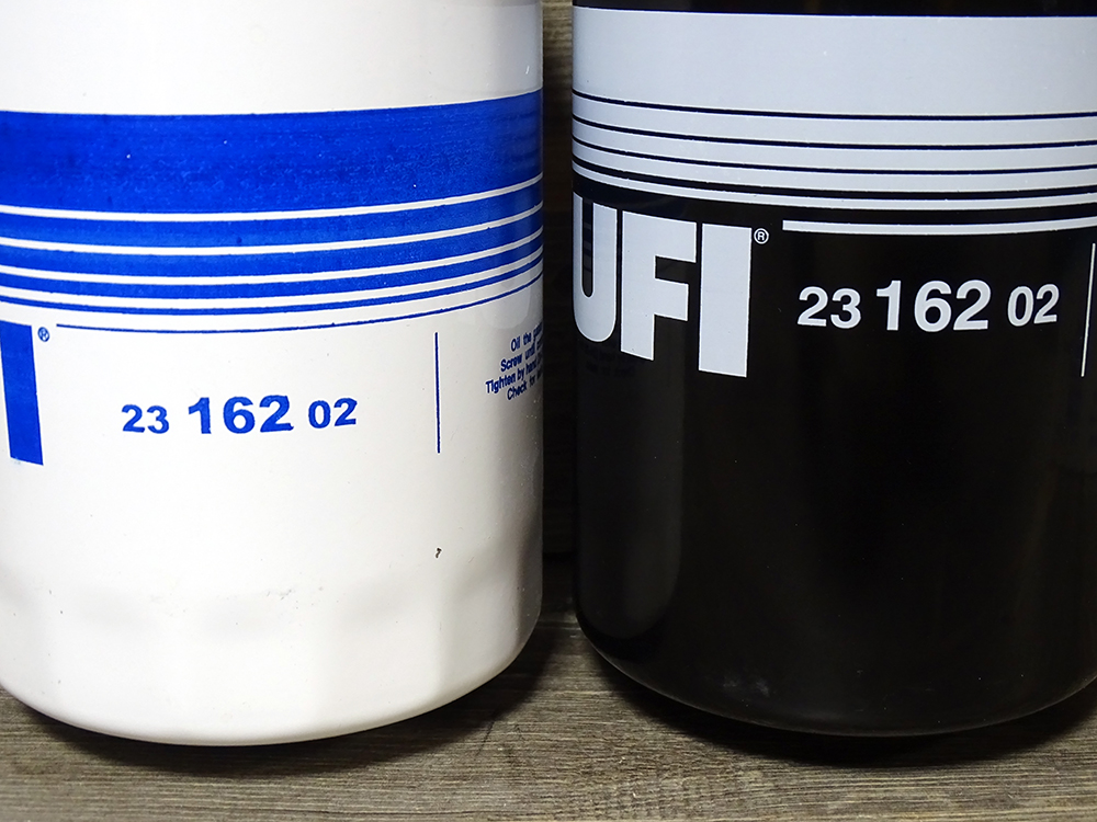 そうなんです、今回取り寄せたフェラーリ 308/328/BB などに使用されている UFI 製の白色のオイルフィルター (品番は 191993) がなぜか白色から黒色に変わっていました。