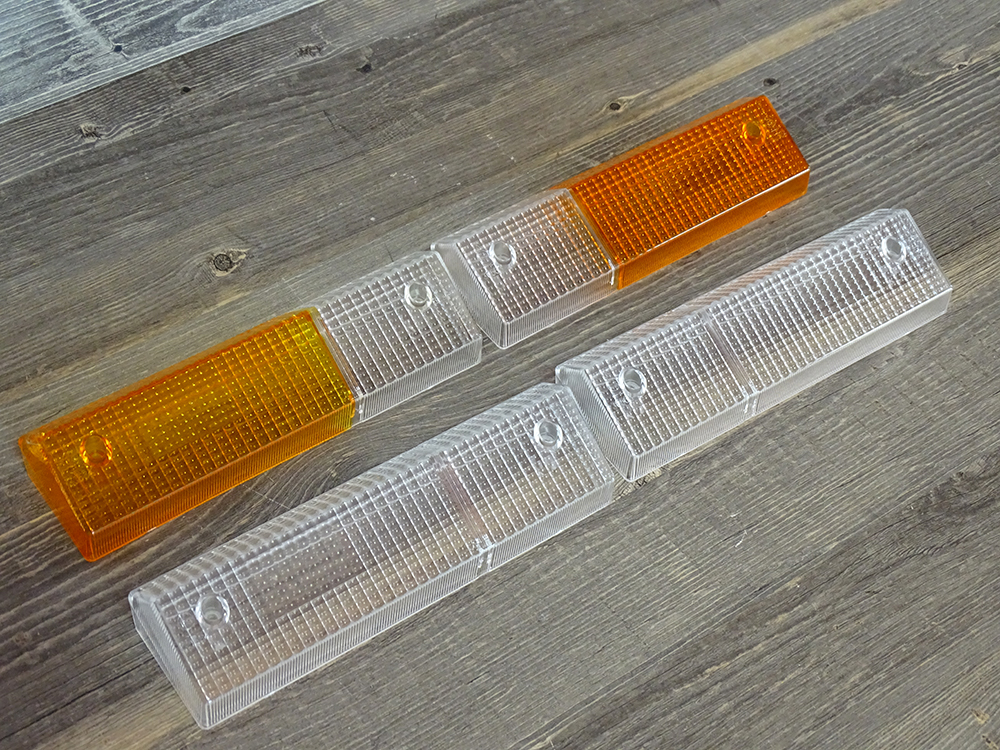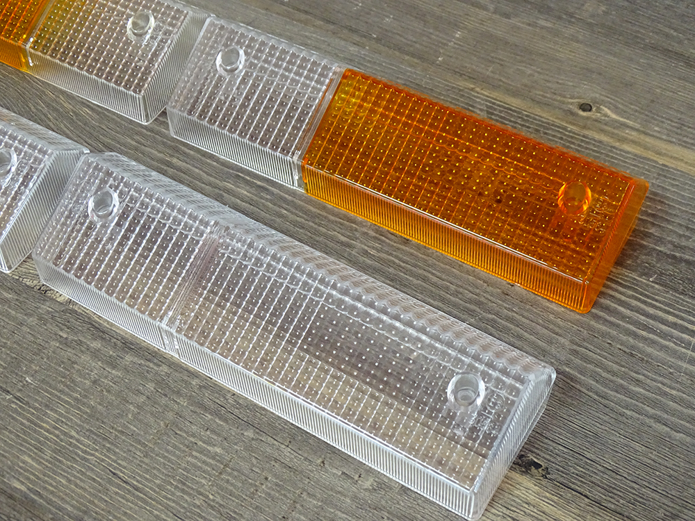オールクリアーのレンズは、初期型の 308GTB(ファイバーボディ)に使用されているケースが多く、ヨーロッパ仕様車の多くはクリアーとオレンジのコンビネーションタイプ。